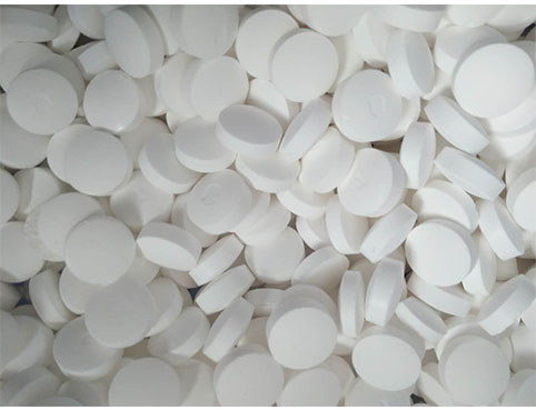 外觀:白色片劑;規(guī)格:1kg*50袋/桶;有效氯含量:50%(±2); PH值(1%水溶液):6.0~7.0; 保質(zhì)期:2年;
